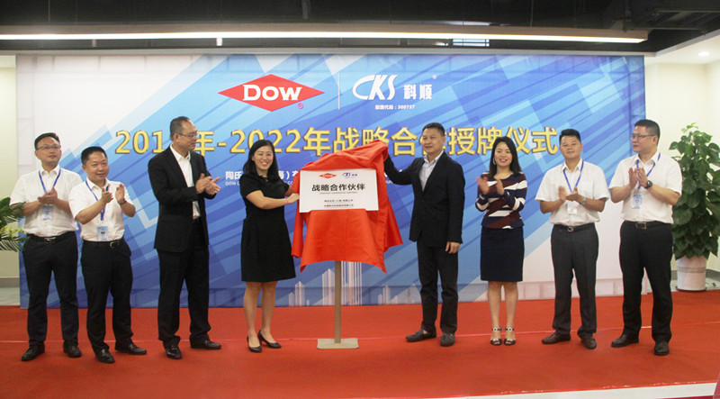 2018年7月2日,科顺防水科技股份有限公司与陶氏化学(上海)有限公司在科顺研发大楼进行2018年-2022年战略合作授牌仪式。