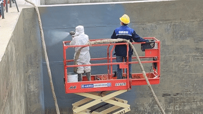 喷涂聚脲施工,通过专用喷涂设备快速混合