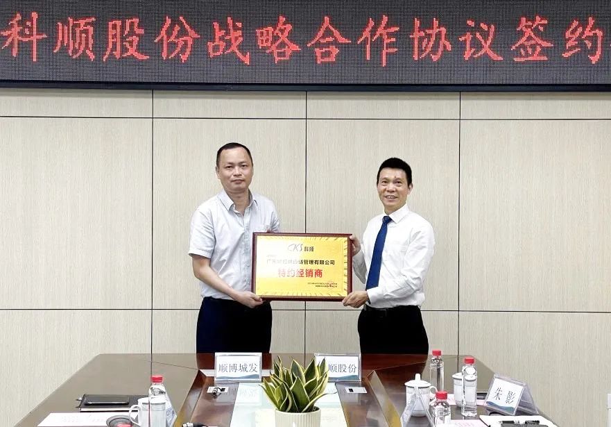 会议上,双方正式签署战略合作协议。科顺股份还向顺博城发下属的广东顺控供应链管理有限公司,授予了特约经销商牌匾,进一步巩固合作基础。