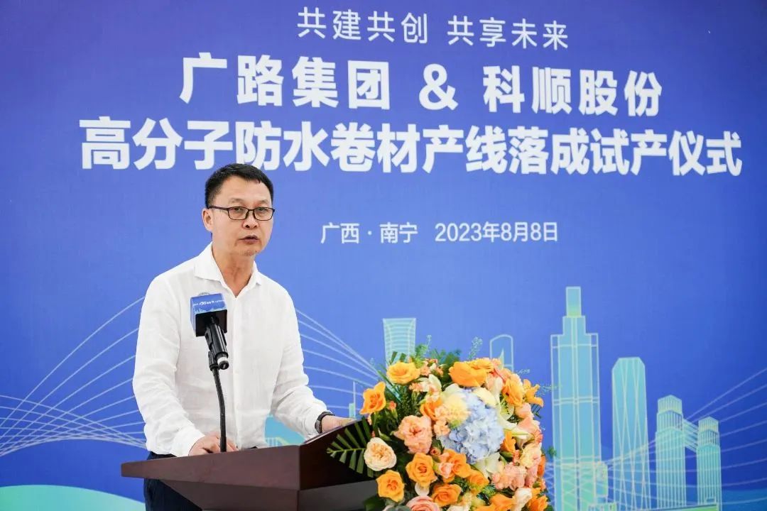高分子防水卷材智能产线的上线,是科顺股份与广路集团加快推进高分子材料项目合作共建、探索产销研深度链接模式的有力例证,也是大湾区企业入桂,与广西国有企业优势互补、融合发展的实践典范。