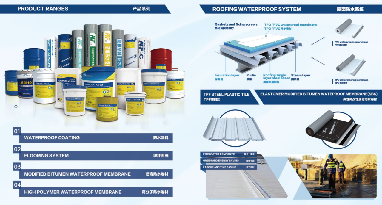 From new construction to retrofitting existing buildings, Keshun’s full range of products covers every need: architectural waterproofing, building restoration, industrial corrosion protection, geotechnical seepage control, mortar powders, self-cleaning nano-coatings, and Keshun pipes, meeting the demands of varied projects.