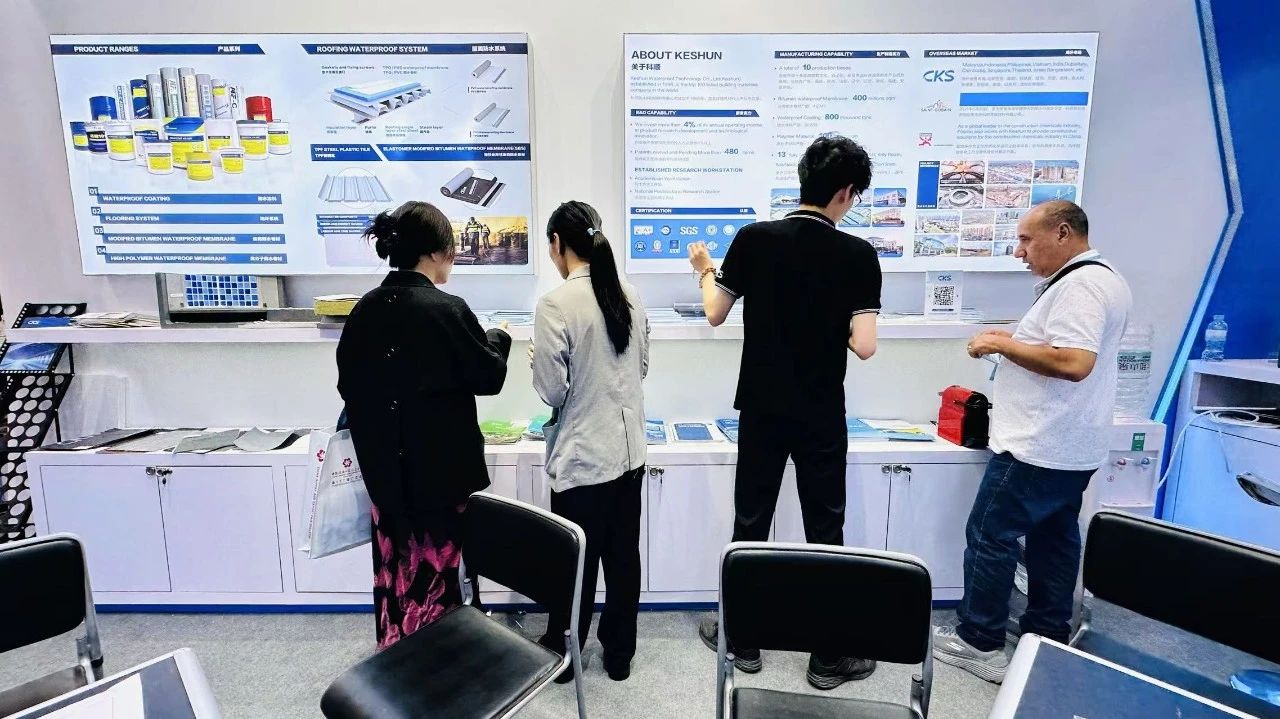 This Canton Fair sees Keshun partnering with global giants like Saint-Gobain and Fosroc to promote roofing systems and one-stop waterproofing solutions, achieving remarkable synergy.