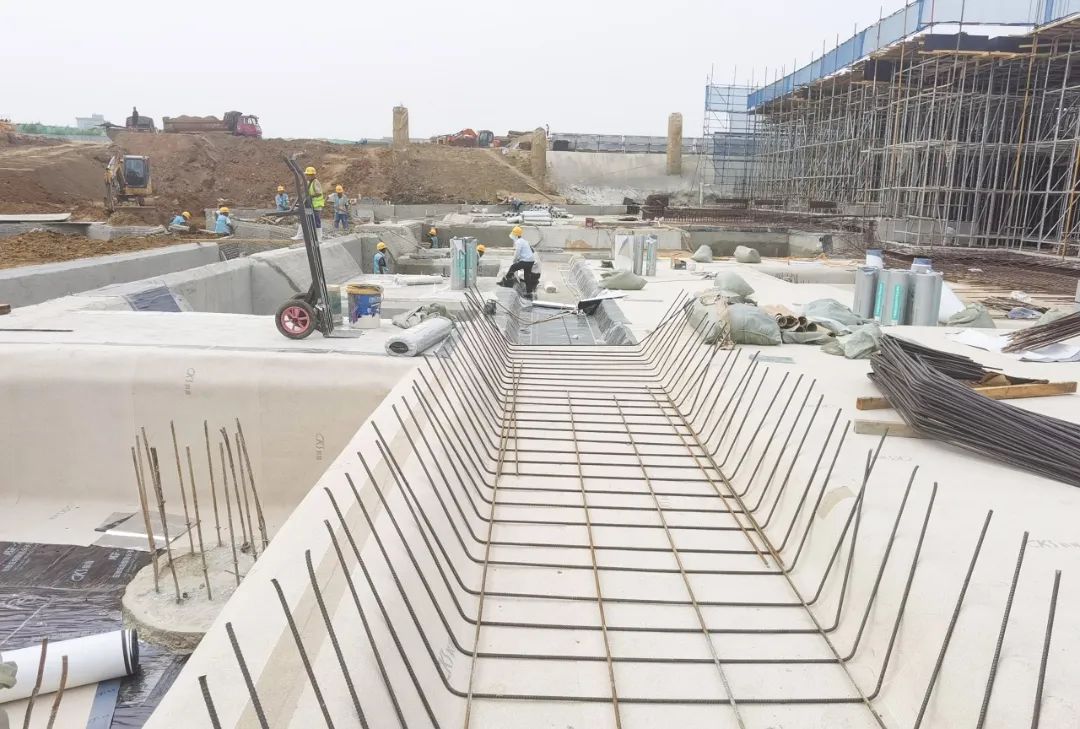 滨海地区地下水位高、防水防潮要求严格,科顺团队使用了APF-D210 预铺式丁基自粘高分子防水卷材(HDPE)、APF-5000 非沥青基强力交叉膜自粘高分子防水卷材、热塑性聚烯烃(TPO)防水卷材等新型防水材料。