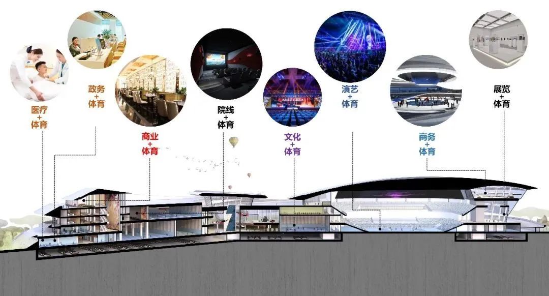 八角湾国际体育中心建成后,将以体育为主体、商业为载体,集合体育竞赛、健身休闲、商业娱乐、文艺演出、会议活动等功能,成为运动与商业互融共生的新型体育MALL。