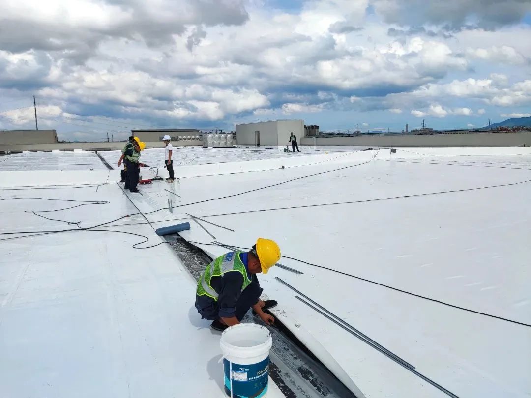 期间,考虑到建筑情况、维修成本、后续的光伏组件安装等,技术中心高分子技术部为项目定制设计防水解决方案,在保留原基层的同时,采用混凝土屋面改造自粘防水系统,为项目带来成本低、效益好、标准高、易维护的防水应用。