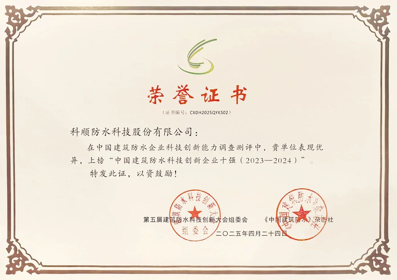 科顺股份凭借行业领先的科技创新实力,荣登“中国建筑防水科技创新企业十强”榜单并斩获第二名,其自主研发的两款防水涂料更以行业唯一单双组分聚氨酯均通过耐根穿刺性能认证的突破性成果,成为首批通过防水涂料耐根穿刺试验企业,以技术创新实力持续引领行业发展。