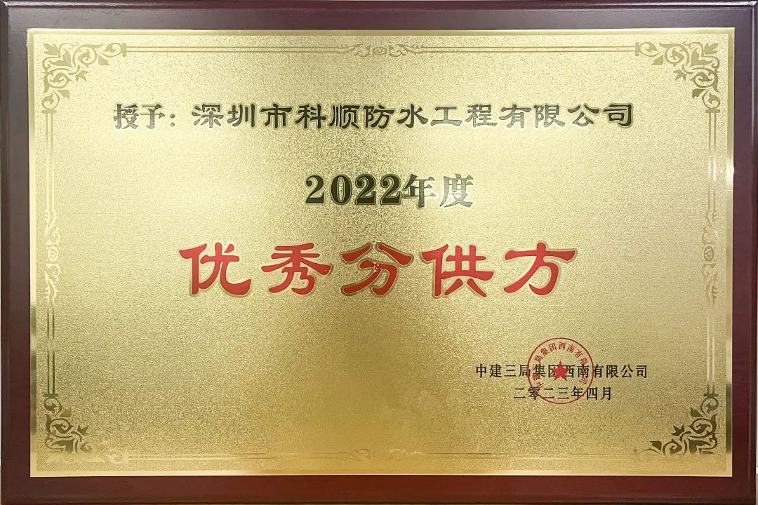大会上,科顺股份被授予中建三局西南公司2022年度“优秀分供方”称号,以优质高效的履约服务及精工筑造品质,获得客户赞誉和高度认可。