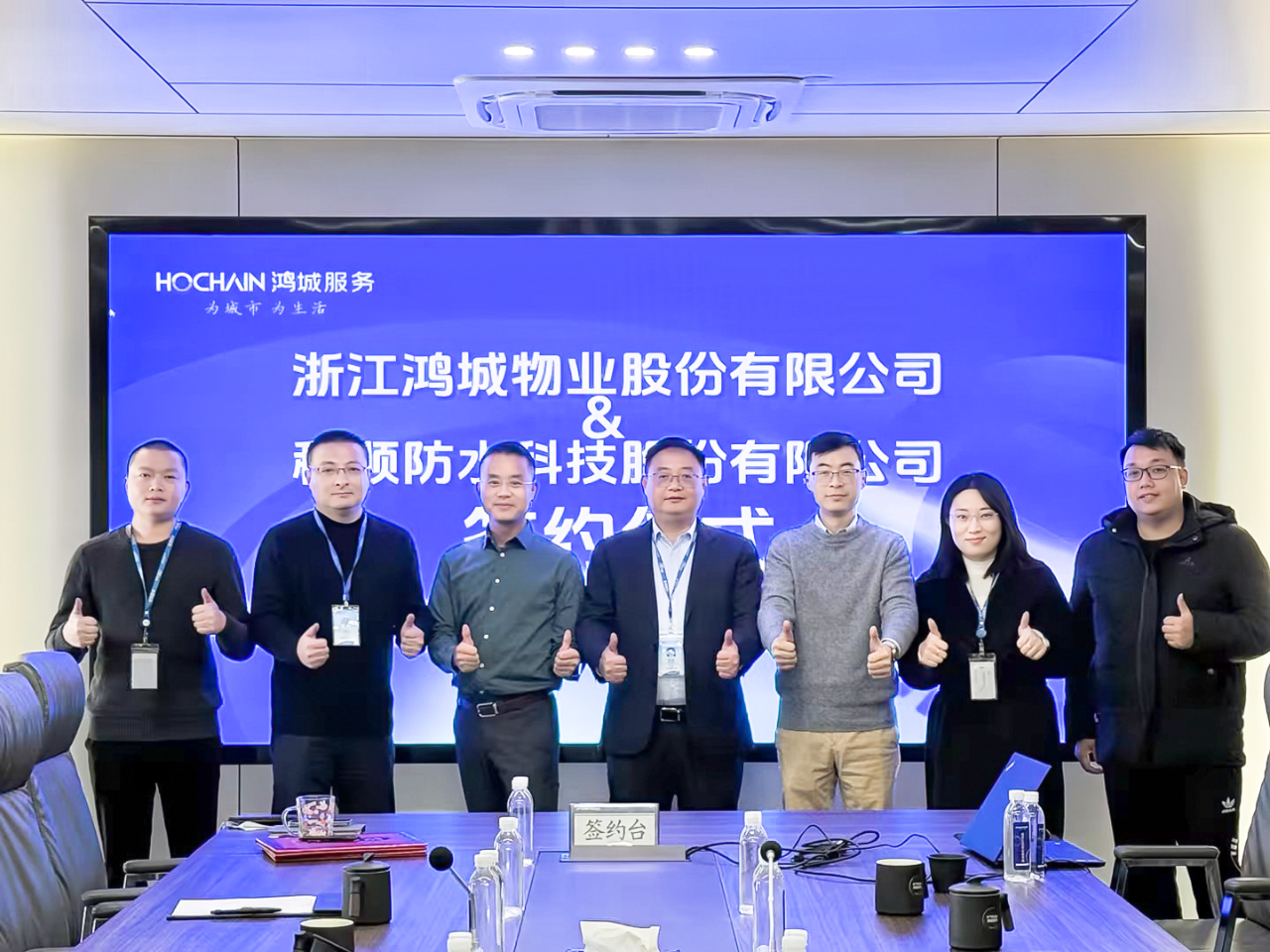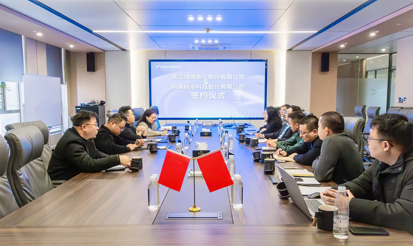 当日出席签约仪式的嘉宾,还有鸿城服务常务副总金涛、运营副总赵佳宾、品质副总沈练、办公室主任袁梦娇等领导;科顺股份浙江省区总经理华军,修缮集团嘉兴运营中心陈总、汪总,修缮事业部总监杜肖,科顺美家事业部总监蒋砺等一同参加座谈。