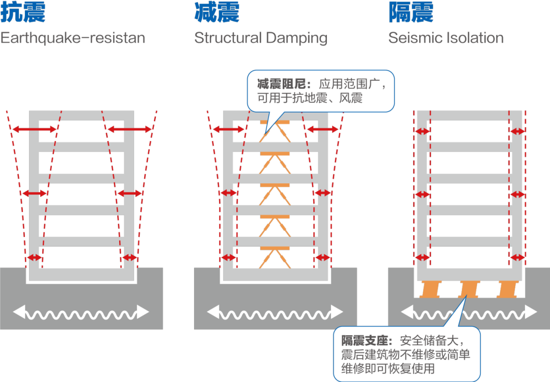 隔震技术(隔离50%-80%的地震作用,安全性能高)