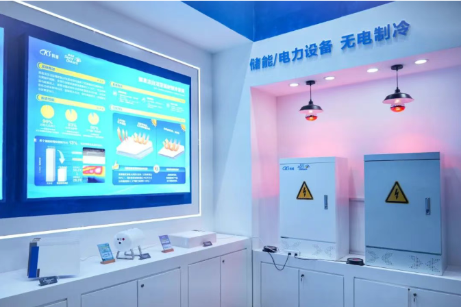 辐射制冷涂层体验区,被动0能耗降温方案,同样高温照射下,涂覆辐射制冷样板温度比未涂覆的低 15℃。