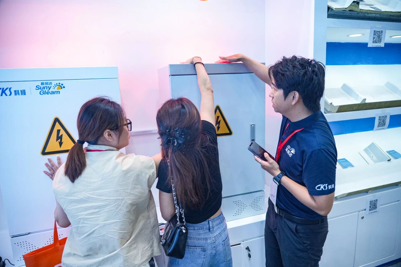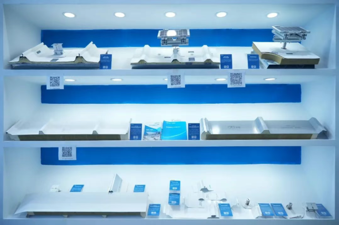 科顺股份集中展出TPF塑钢瓦+光伏支座、光伏纳米自清洁涂层等一站式解决方案,吸引全球参展者参观。