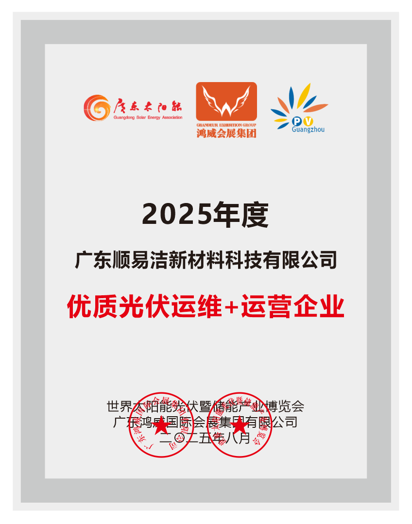 这不仅是对提升电站效率、降低运维成本成效的高度认可,更彰显了顺易洁在行业内的专业实力和良好口碑。