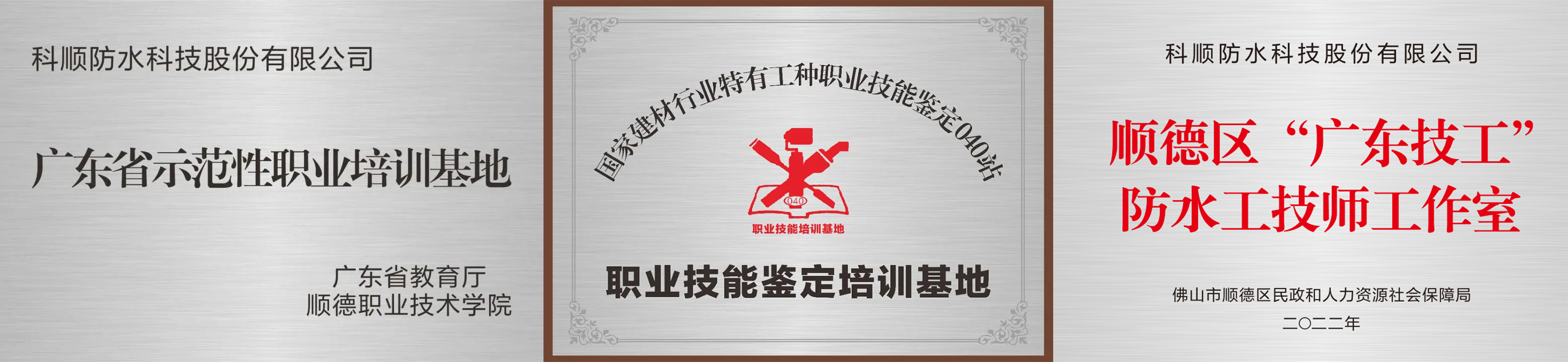 科顺职校是广东省建筑防水行业首家民办职业技能培训学校。目前已获得佛山市人社批准,可开展“营销员、防水工、涂料生产工”三个工种的职业技能等级认定资质,对外获得“广东省社会培训评价组织资质”,并成为镶贴工、美缝师培训基地。