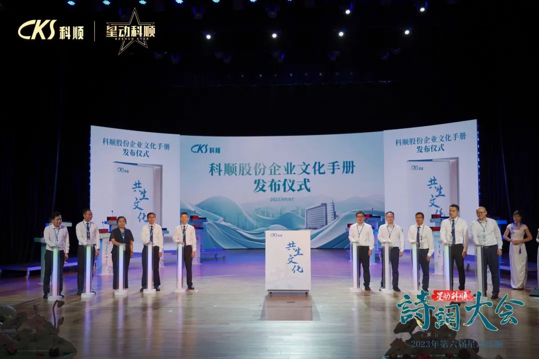 晚会上,科顺股份集团总裁方勇,集团副总裁毕双喜、卢嵩、汪显俊、陈冬青、段正之、叶吉、刘杉、陈华忠,法律总顾问赵晶一众领导,共同点亮发布仪式启动柱;董事长办公室主任余婉青、总裁办主任赵蓉、工程建材集团总裁王先松共同参与见证。全集团员工通过全国直播与现场亲临,集体见证点亮“共生文化”之魂和文化传承之光的重要时刻!