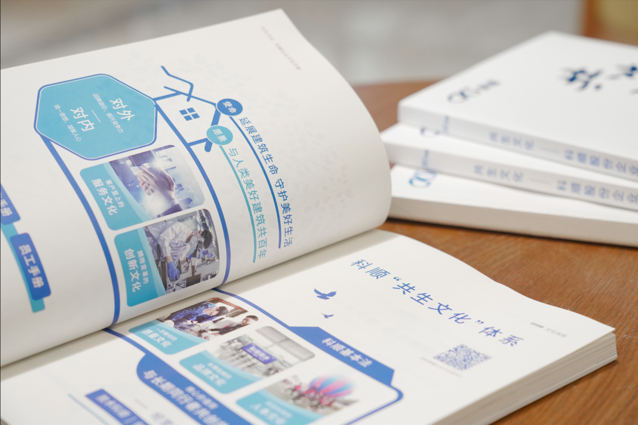 坚持以“共”为核心的价值引领,《科顺股份企业文化手册》在党建引领企业文化的前提下,从文化缘起、企业文化体系、五大子文化、文化知信行等方面,系统阐释“共生文化”的核心内容。