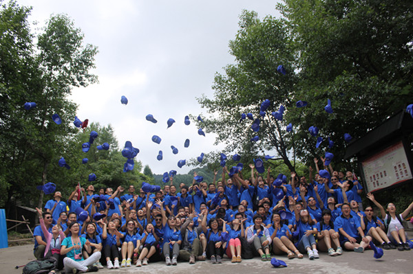 金鞭溪和黄石寨是此次张家界之旅的最后两个景点。尤其黄石寨,素来有“不到黄石寨,枉到张家界”的美誉,是景区的压轴之作。19日上午,一行人早早出发来到了潺潺流水的金鞭溪,满目青翠,习习微风过处,在炎炎夏日里给游客带来无限惬意。清澈见底、纤尘不染的碧水中,鱼儿欢快地游动,红、绿、白各色卵石在水中闪亮,阳光透过林隙在水面洒落斑驳的影子,给人一种大自然安谧静美的享受。随后,伴随着最后一站黄石寨的参观游览,各小组的拓展活动又纷纷开展起来。活动要求以小组为单位,以队旗为标志,随意取景,拍出一张最具特色的组合造型图片。在海拔1200多米的黄石寨凌空观景台上,远眺万里长空,峰峦如聚,天空山峦浑然一体,各小组结合壮丽风景和奇思妙想的造型创意,各自交上了满意的答卷。晚上8点,盛大的“辉煌篝火晚会”于武陵源溪布街热烈开展起来,全民互动的集体舞、奇葩造型组的环保时装秀以及压轴尾声——感悟湖南蓝丝带等活动项目,为此次相约湖南的七月之旅画上了圆满的句号。