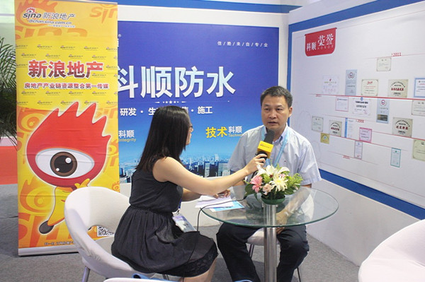 8月28日第十一届中国国际屋面和建筑防水技术展览会在北京国家会议中心拉开帷幕。国内外知名企业悉数到场。绿色屋面与施工技术成为本届展会的两大亮点。同时责任与发展成为展会期间共同探讨的话题。展会上,新浪地产(微博)专访了广东科顺化工董事长陈伟忠。