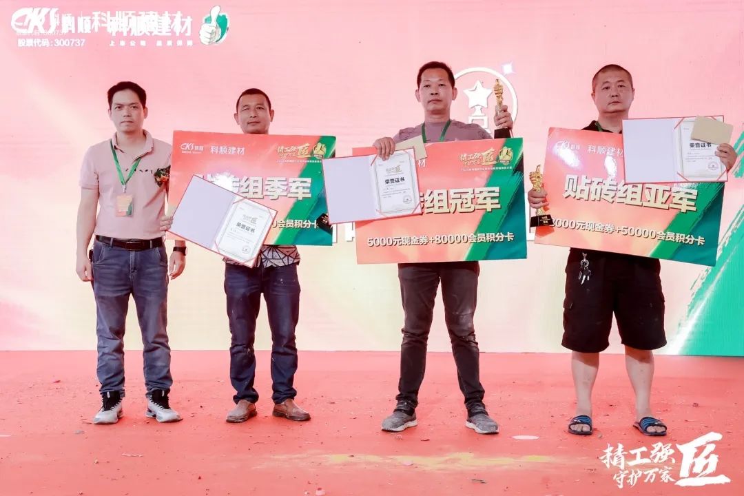 李文骞师傅获得大赛贴砖组冠军(右二)