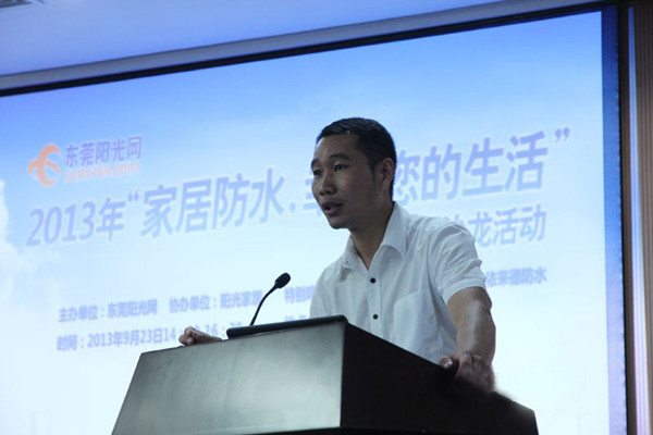 为了更好地向广大民众传达甄选防水材料、科学施工、合理维护等基础知识,2013年9月23日,东莞阳光网在东莞市广播电视台16楼会议室举行了一场“家居防水,幸福您的生活”主题沙龙活动,该沙龙由广东科顺依来德防水全程赞助,东莞亚太设计师联盟东莞区会长、副会长、秘书长等领导,以及东莞著名的装饰设计公司亚欧装饰、国大装饰、德乐智能等企业的设计总监、总经理等共120余人参加了此次沙龙。