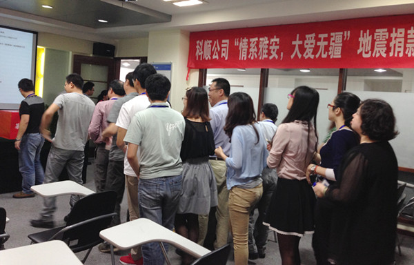 2013年4月25日上午9时30分,广东科顺化工实业有限公司于总部科顺学院举行了一场盛大的“情系雅安、大爱无疆”地震捐款活动。公司总部上下全体员工纷纷热情参与,踊跃捐款,活动取得了圆满的成功。