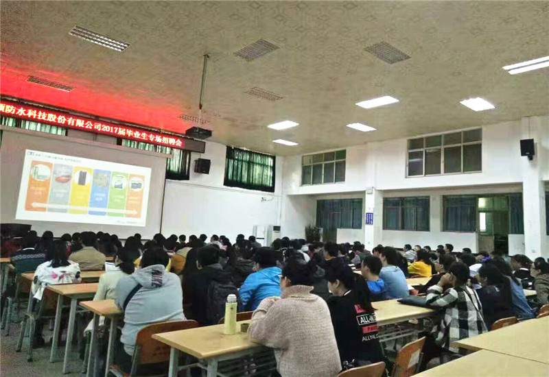 2016年12月6日与12月8日,科顺防水科技股份有限公司分别于南华大学就业大厅和湖北工业大学举办了校园宣讲会,人力资源总监邓新旺、培训经理于海和招聘部工作人员为南华和湖工大的学子们带来了科顺的人才招聘信息及培养计划。