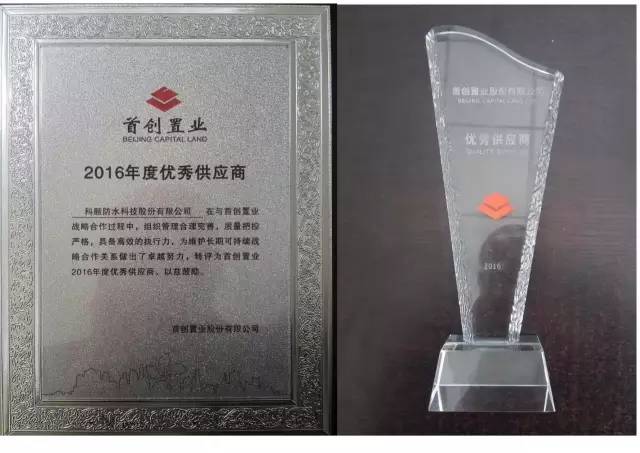 喜讯|科顺防水荣获首创置业“2016年度优秀供应商”奖项