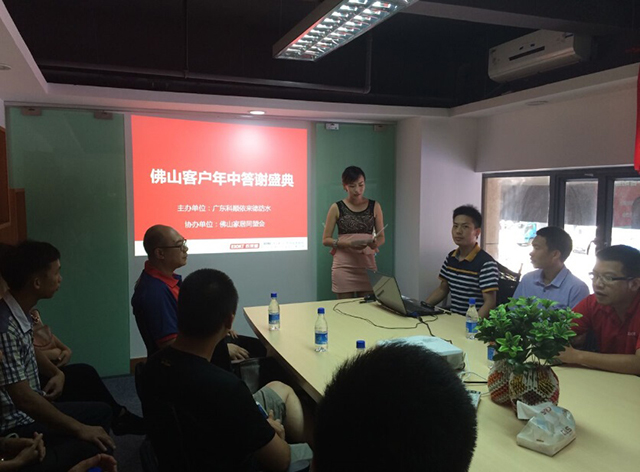 6月29日,依来德佛山客户年中答谢会在顺德如期举行,本次答谢会得到了佛山家居同盟会的大力支持,依来德市场经理张小华、策划经理唐恩仪、佛山大客户经理李国辉和黄永坚、销售经理赖利权、夏登峰、潘少华以及佛山地区近30位经销商合作伙伴应邀参加本次答谢会。