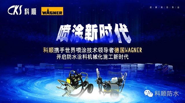 2014年,防水涂料全新施工技术重磅来袭。科顺防水携手世界喷涂技术领导者——德国WAGNER,开启防水涂料机械化施工新时代。技术改变世界,科顺创新从未止步。