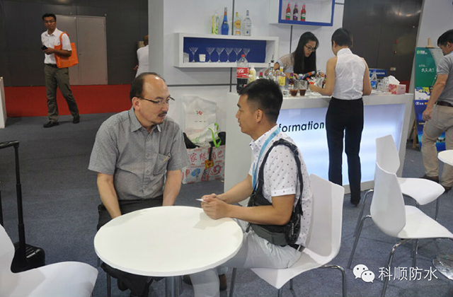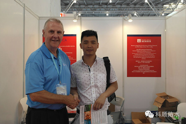 因此,在本次防水行业的盛宴中,科顺特别注重与外籍友人的沟通交流,希望借助国际展会的良好平台,进一步加大迈向全球市场的步伐。本次展会不仅国内防水届的高手纷纷出招,国外采购商也纷至沓来,见证此次盛会,寻找商机。科顺精心布置展位,简单高雅大气,吸引不少国外客户前来洽谈合作,其中有来自日本、西班牙、美国、印度、俄罗斯、台湾等地的采购商。通过参与科顺展会现场“喷涂新时代”的发布会,以及观摩喷涂施工实操、APF-C反应型高分子自粘防水卷材的施工,他们对科顺的产品赞不绝口,一致认为该技术和产品已经达到国际领先水平,同时也完全符合他们国外的施工习惯,施工效率高,产品综合成本有优势,增长了他们合作的热情。