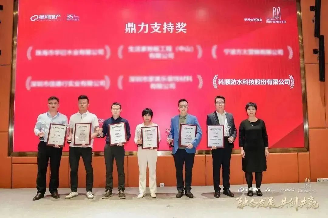 此次星河地产集团在近2000家供应商中优中选优,向科顺股份颁发“鼎力支持奖”,感谢公司在重大交付节点的大力支持、完美履约,助力星河地产集团实现“星河所在,必定中心”的价值承诺。