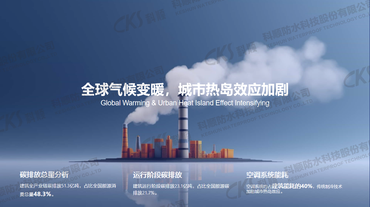当前建筑领域正面临双重挑战:一方面,既有建筑屋面普遍存在隔热效率低、表面易积污、防水寿命短等问题,不仅影响居住舒适度,更造成大量能源浪费;另一方面,全球气候变暖加剧城市热岛效应,建筑高能耗问题日益突出,市场亟需一种能兼顾防水、降温、自洁的一体化解决方案。