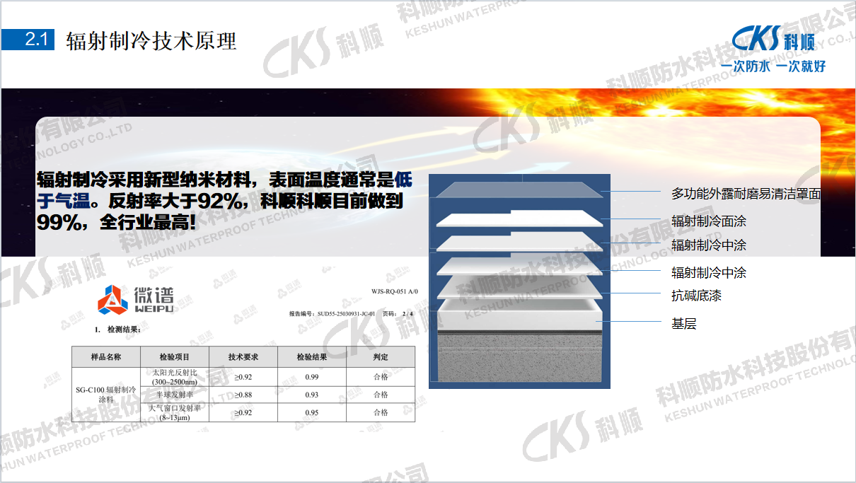科顺深耕行业痛点,历经数年研发打磨的自洁型辐射制冷防水一体化方案,正是针对这一核心需求的精准破局之作。