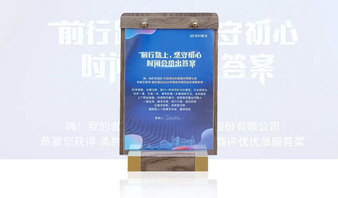 服务制胜守初心,携手同行赴美好。在美的置业2022年度供应商评优中,科顺股份获颁优质服务奖,以美好建筑守护美好人居生活。