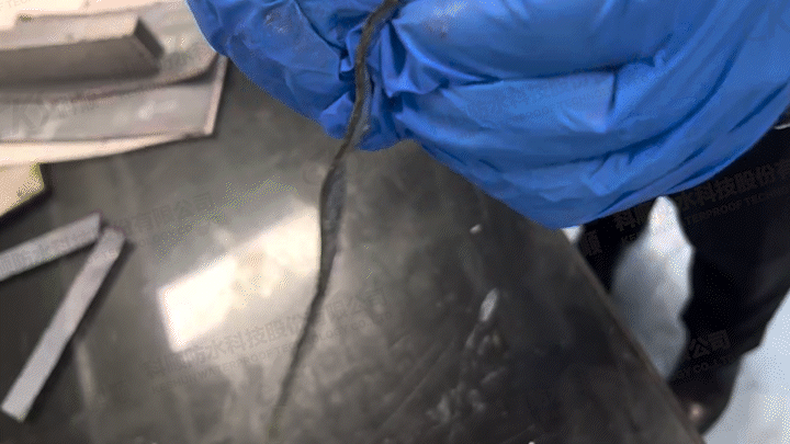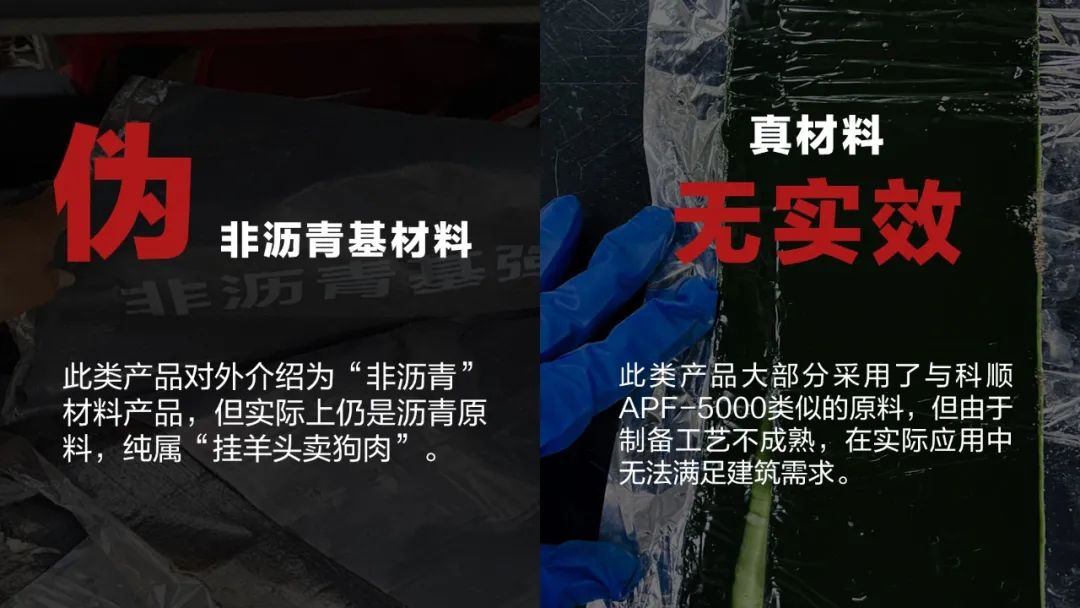 市场上一些常见的非沥青自粘防水卷材为了提升指标(如低温柔性)加了过多填充油,导致胶料软塌,韧性差;(正常橡胶的填充油较少)