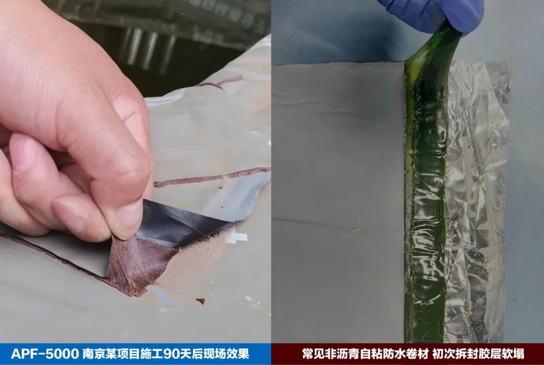 (常见非沥青自粘防水卷材胶层软塌)▼