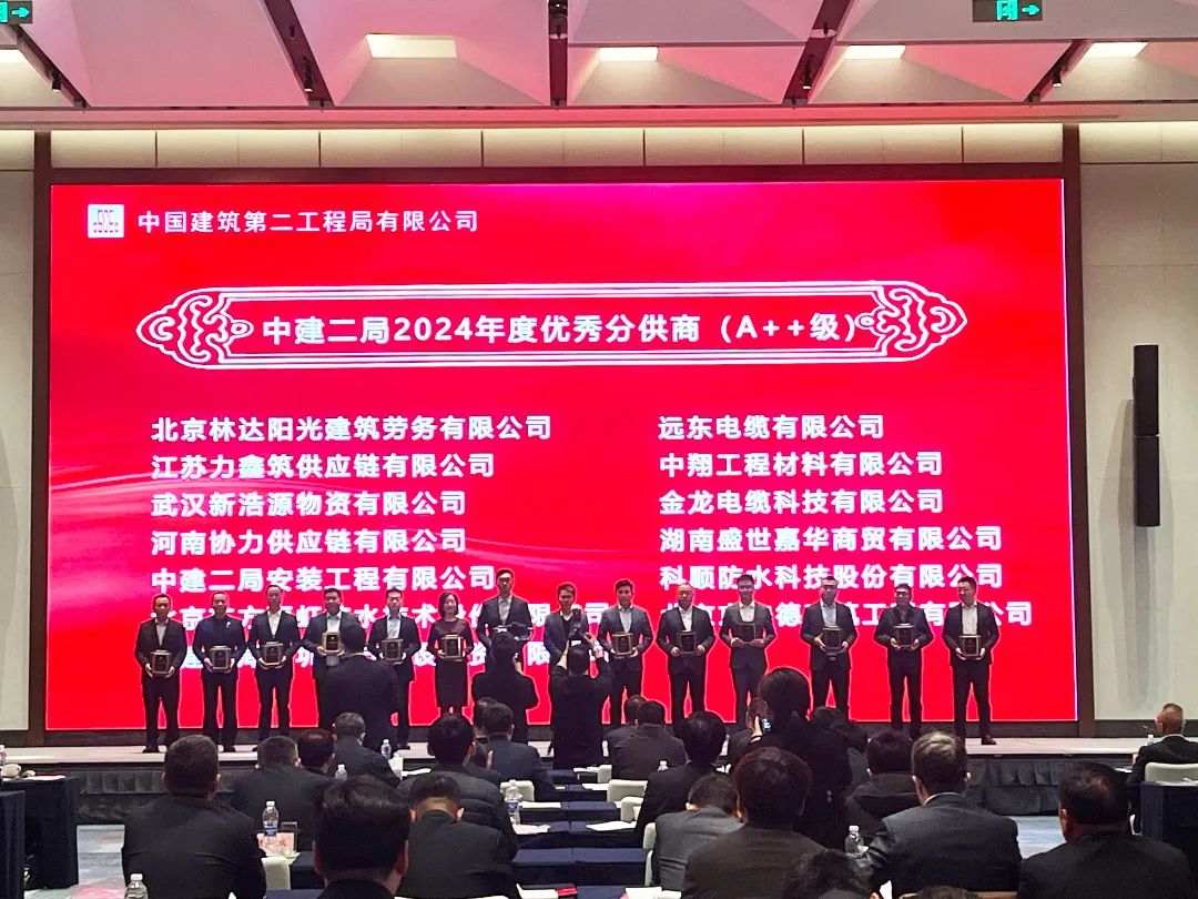 4月1日,中建二局首届供应链管理暨合作伙伴大会在青岛召开。科顺股份应邀出席,获年度“A++级”优秀分供商表彰。