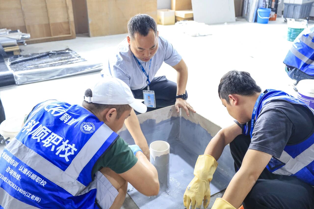 理论课堂由集团资深专家主讲,系统讲解防水构造、渗漏勘察、四大场景维修技术、方案编制与报价要点,并新增新媒体与 AI 应用课程,助力学员掌握数字化获客新能力。