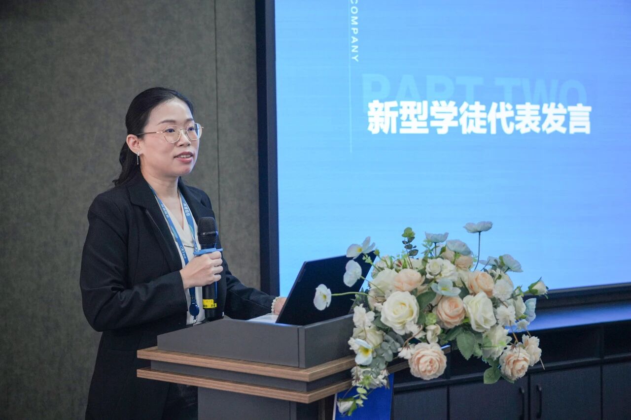 学徒代表陈思敏在发言中表示,通过本次培训感受到“职业无性别、技能皆可为”的平等与开放氛围,并代表全体学徒承诺,将以空杯心态全心投入学习,力争全员通过职业技能认证,成长为具备过硬专业素养的技能工匠,为行业高质量建设添砖加瓦。