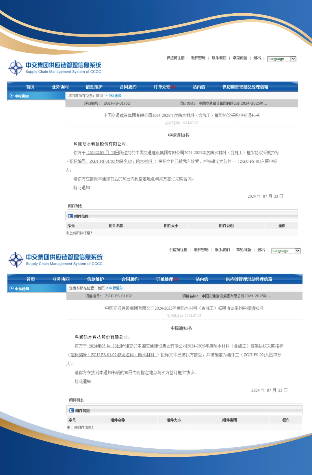 近日,中国交通建设集团有限公司2024-2025年度防水材料集采评标公示正式发布,科顺股份与中交集团延续供材与双包的合作模式,成为中交集团年度战略供应商。