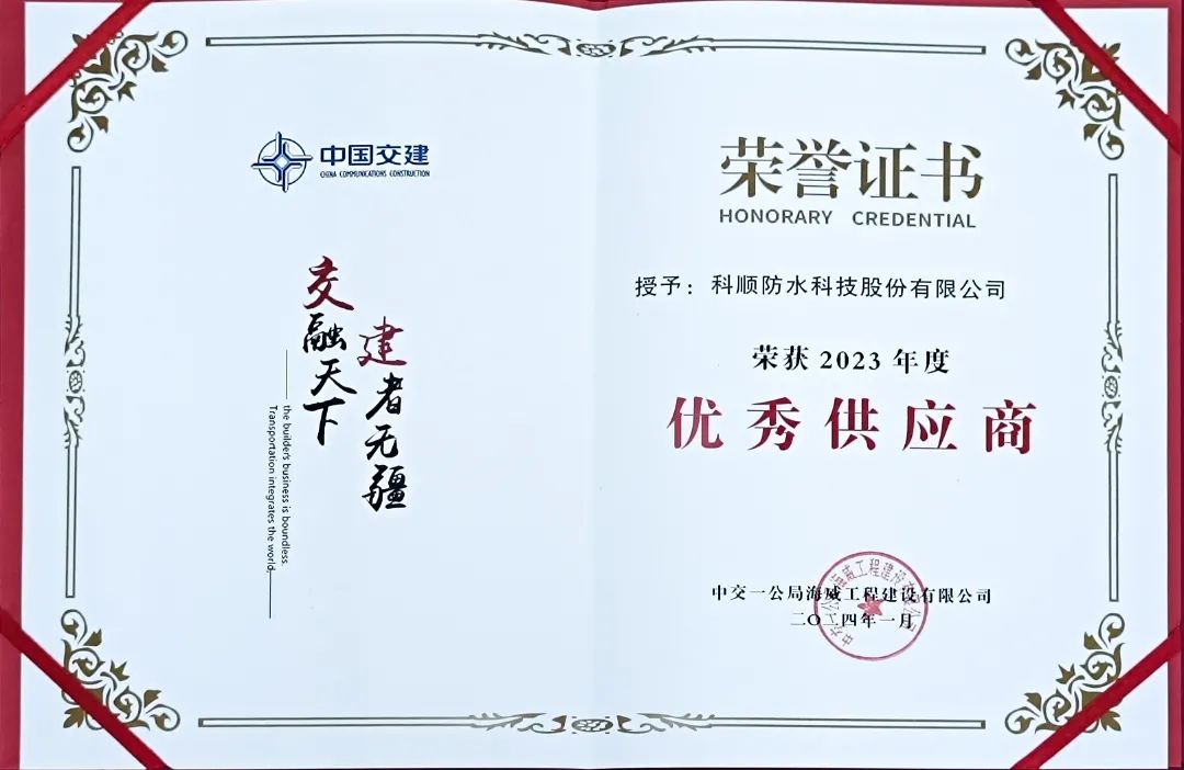 今年,在中建系统的严格认证和评估下,科顺股份还获得年度“优秀供应商”等称号,综合实力得到高度认可。