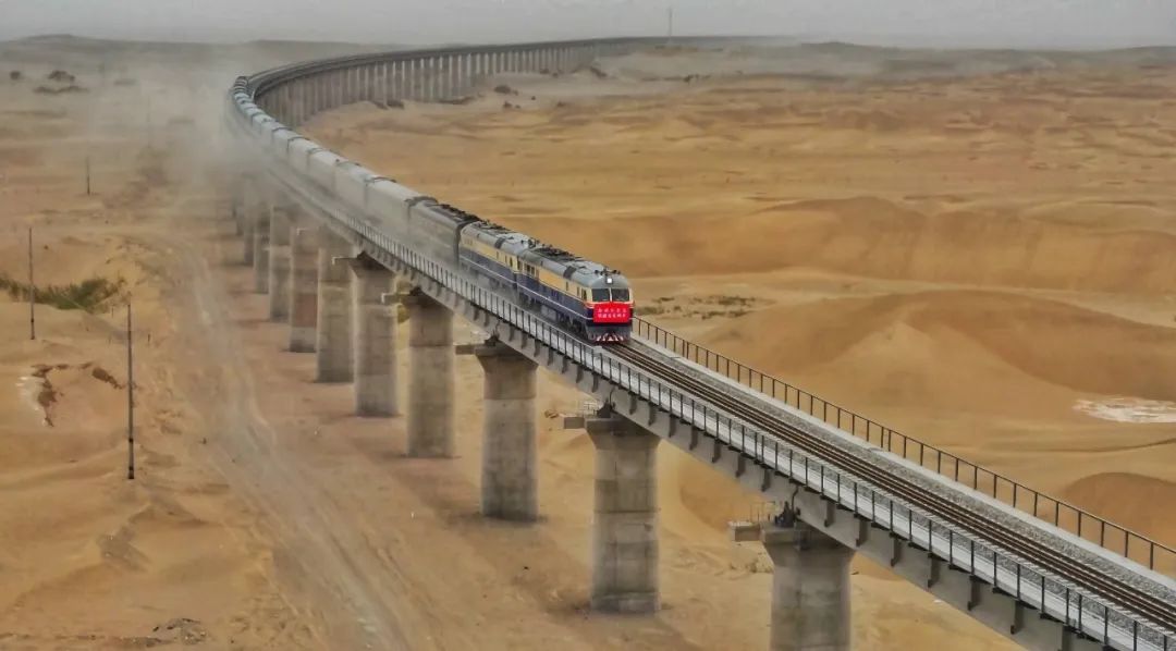 项目介绍:和若铁路西起新疆和田地区和田市,东至巴音郭楞蒙古自治州若羌县,全长825公里,设计时速120公里,为国家Ⅰ级单线铁路。铁路地处世界第二大流动性沙漠——塔克拉玛干沙漠南缘,有534公里分布在风沙区域,占线路总长65%,是一条典型的沙漠铁路。