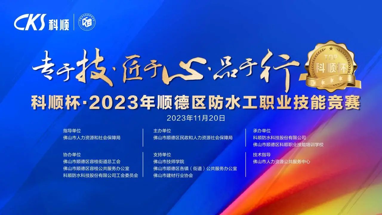11月20日,由佛山市顺德区民政和人力资源社会保障局主办的“科顺杯”2023顺德区防水工职业技能竞赛在广东佛山开幕!