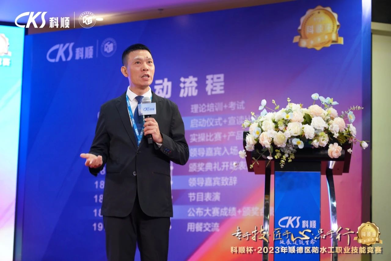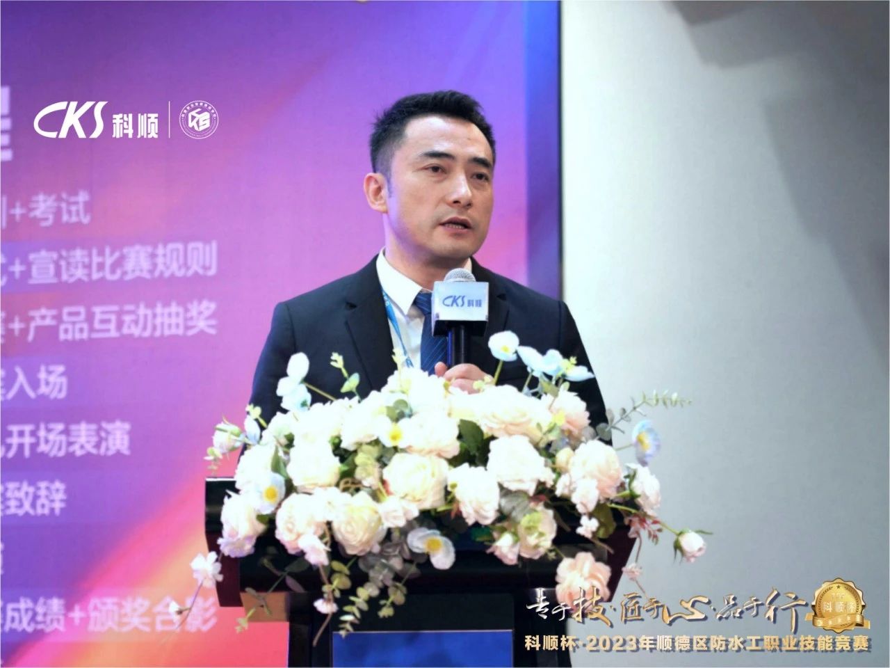 科顺股份集团总裁方勇致辞指出,科顺股份和科顺职校以开放、创新、共享的办赛态度,展示出防水技工培训和职业教育融合的发展实效。
