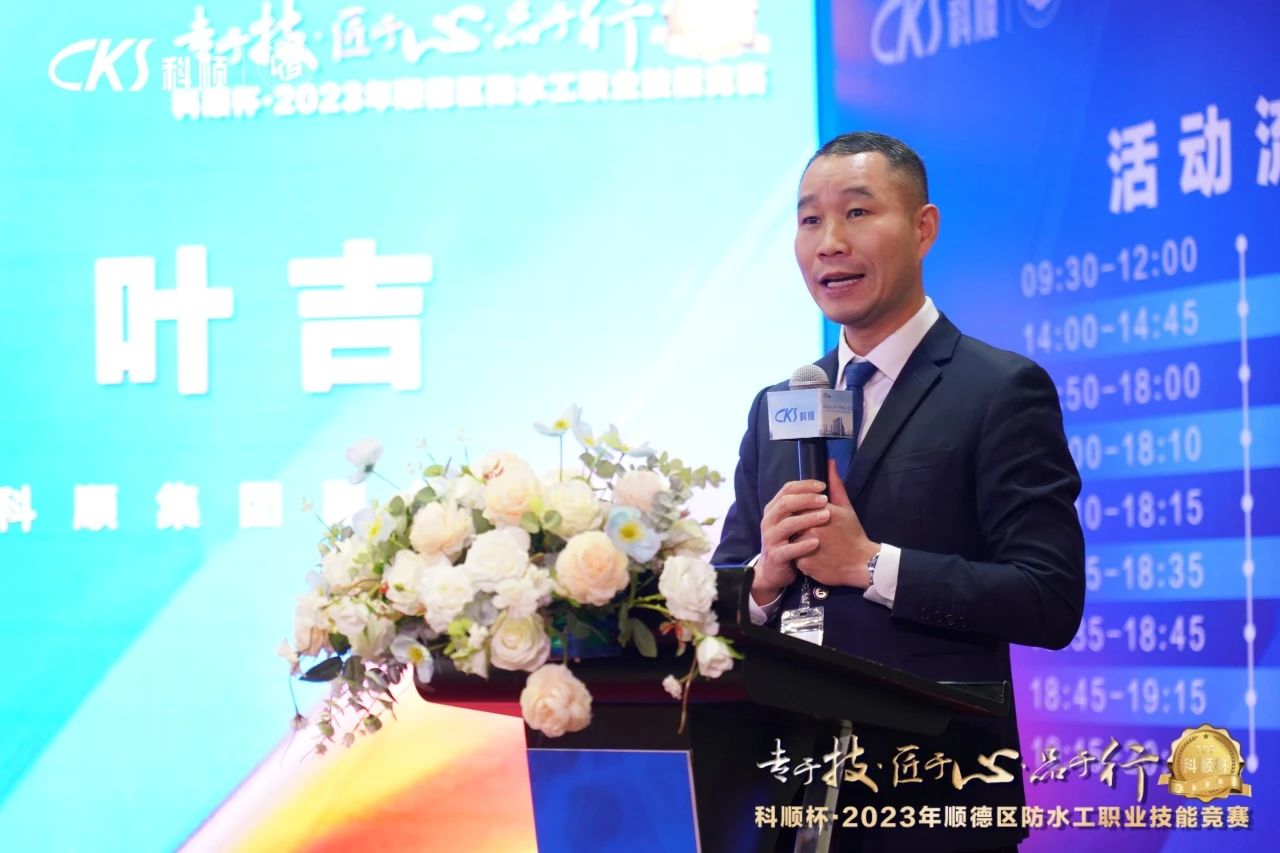 大赛启动仪式上,科顺股份集团副总裁叶吉出席致辞。他指出,在防水行业走向更规范化、标准化发展的当下,各地的防水技术培训和技能竞赛方兴未艾。