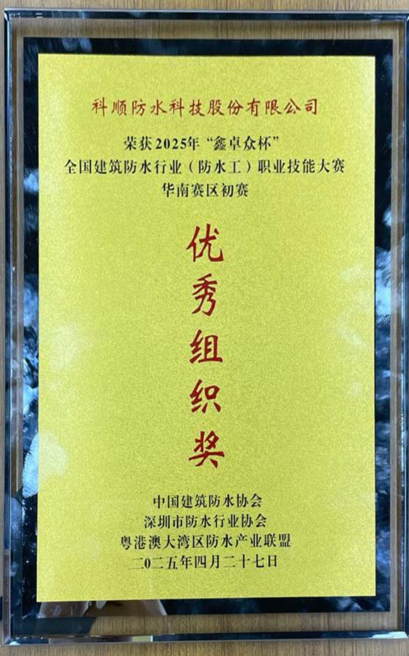 科顺防水凭借标准化施工模式与精湛技艺,斩获"优秀组织奖"及五项个人奖项,以6项荣誉彰显行业标杆实力!