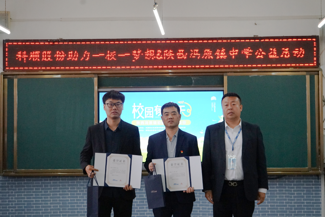 县工商联党组成员范军燕、陕西悦佑建设工程有限公司执行董事问王刚、科顺股份市场中心总监董海、渭南科顺总经理葛云尚、科顺股份陕西分公司总经理何永春、北京感恩公益基金会温惠艳,冯原镇中学校长王峰和部分教师代表出席活动、开展座谈交流
