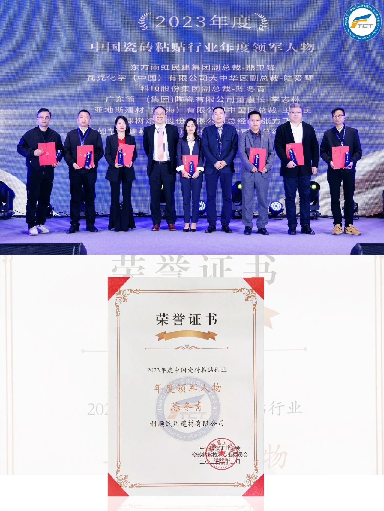 获颁2023年度中国瓷砖粘贴行业