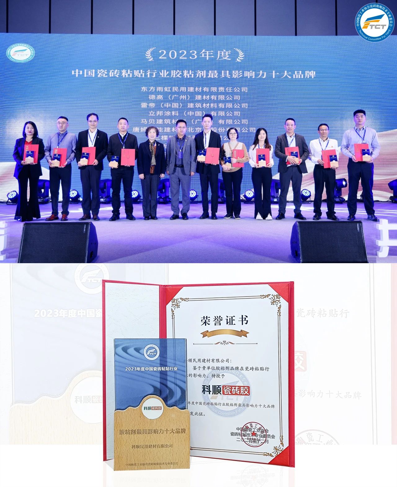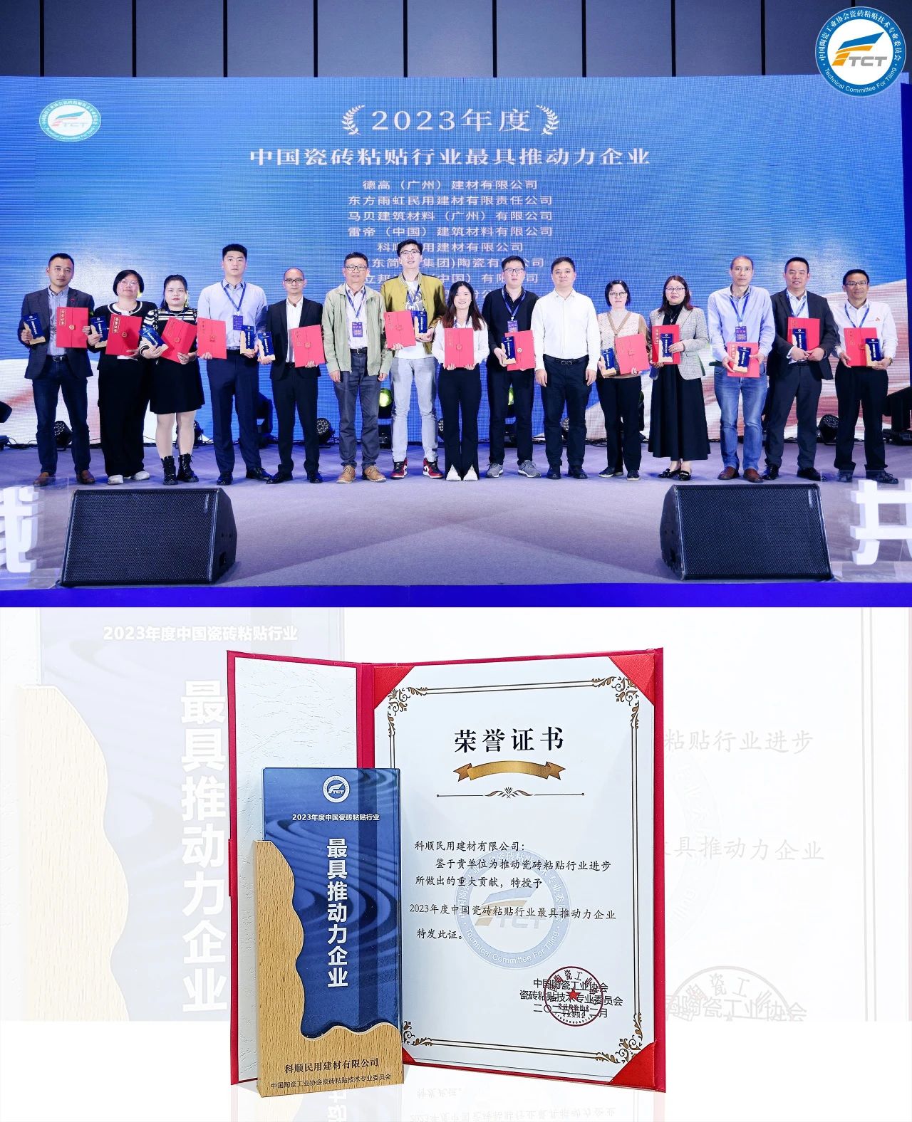 近日,由中国陶瓷工业协会瓷砖粘贴技术专业委员会(TCT)主办的2023中国瓷砖粘贴行业年度技术交流会议在佛山成功举办。科顺股份及科顺建材斩获多项大奖,倍受瞩目。