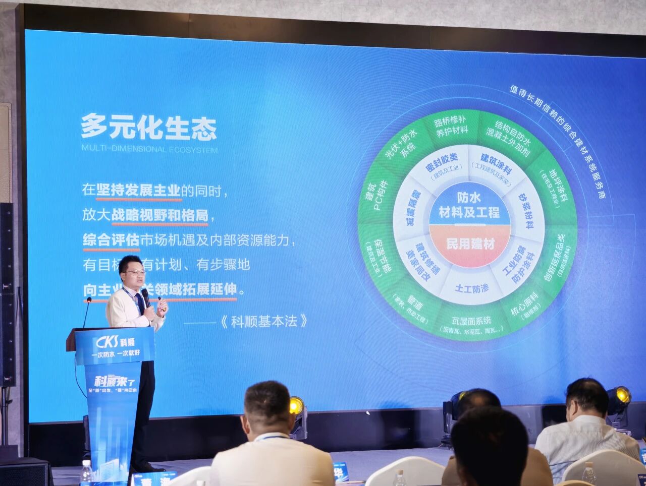 科顺股份市场总监董海在演讲中介绍,公司多元化产品生态多项契合新疆特殊需求的明星产品。科顺新疆设有本地生产基地及多条先进生产线,确保产品快速供应和专业技术服务支持,全力帮助合作伙伴提升市场竞争力。