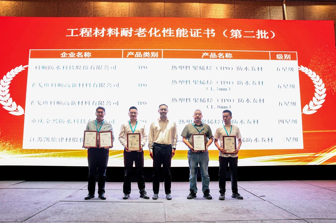 凭借对产品品质的极致追求,科顺股份旗下共三款TPO防水卷材,均获最高级别的“五星级”认证。该认证是高分子防水卷材耐用性的权威衡量标准,其中“五星级”代表行业最高水平。